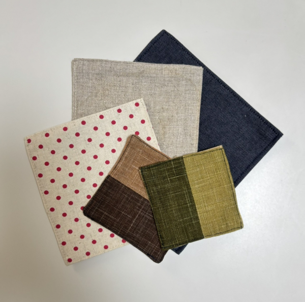 エプロンの余り布を活用して、コースターを製作することになりました。